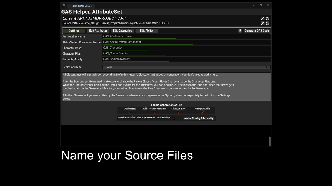 - The Editor Utility generates your GameplayAbilitySystem source files with just a click.